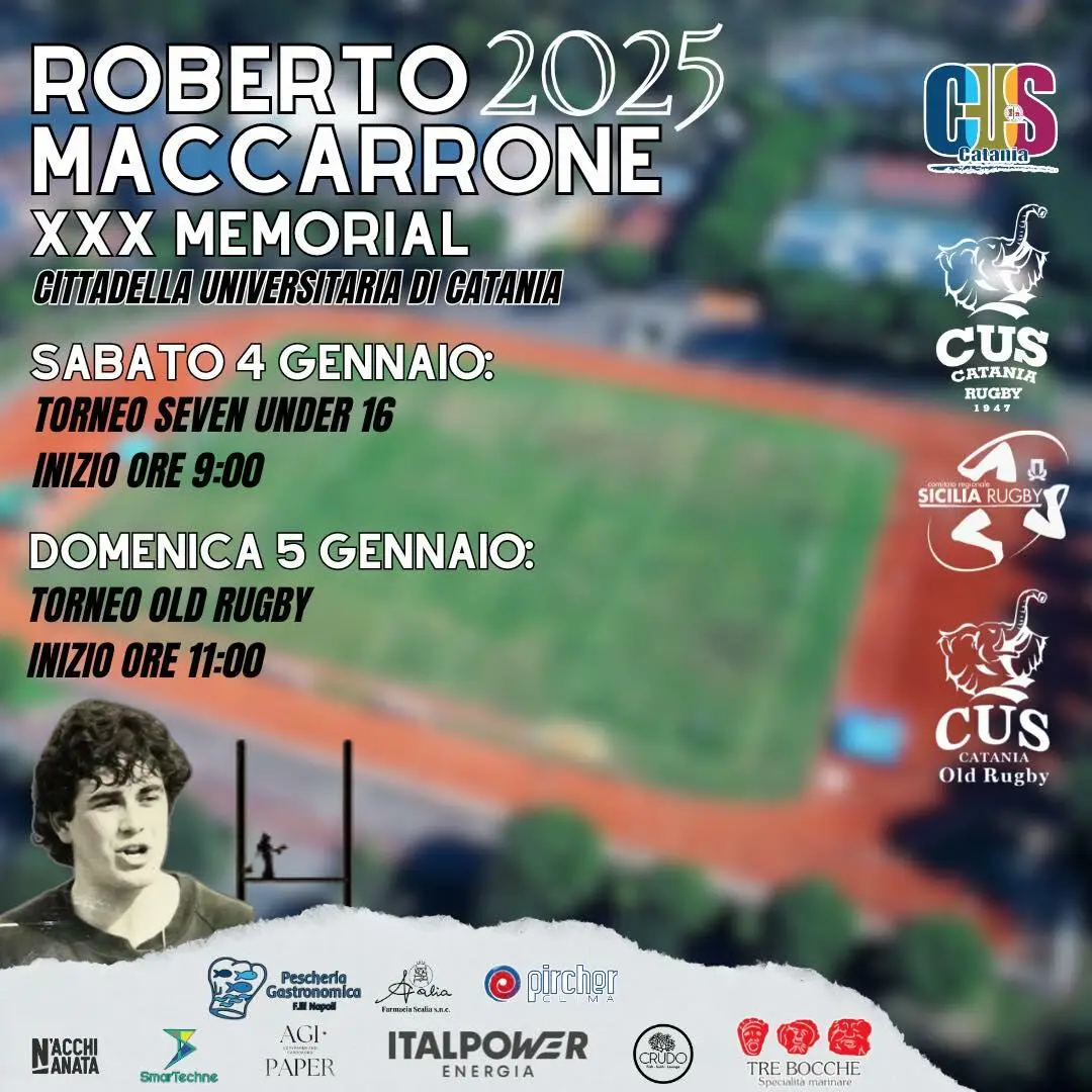 CATANIA - Trent’anni e non sentirli! Sono infatti trascorsi tre decenni dalla prima edizione del Memorial Maccarrone nato su iniziativa del prof. Nino Puleo, figura cardine del rugby catanese e del Centro universitario sportivo etneo, per ricordare e onorare la scomparsa dell’architetto-rugbista (terza linea del Cus Catania) Roberto Maccarrone detto “Roccia”, venuto a mancare il 23 dicembre del 1994.