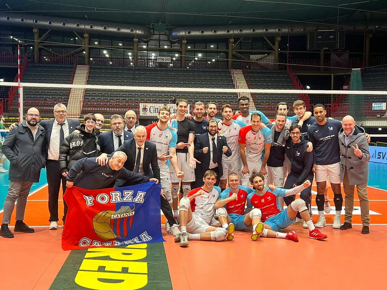 PRIMO SET. Subito avanti Sviluppo Sud Catania con una schiacciata vincente di Luka Basic, rossazzurri che acquisiscono un paio di punti di vantaggio e che gestiscono la superiorità. Sorrento accorcia le distanze con un muro vincente e poi pareggia grazie ad un errore di Marshall. Tutto da rifare per i rossazzurri che, però, ancora con Basic riescono a riacquisire il vantaggio. Ma dura poco e dopo il nuovo recupero di Sorrento, si procede punto a punto con grande equilibrio. Un muro vincente di Catania costringe Esposito a chiamare time out sul punteggio di 16 a 14 per i rossazzurri. Altro time out sul 19 a 17 per Catania che allunga ancora con Arinze. Rossazzurri che, dopo un monster block di Volpe, arrivano con un buon +5 ai punti decisivi del set. Sorrento, però, si fa sotto e sul 22 a 19 Montagnani chiama time out. Ancora Volpe, ancora un muro vincente portano Catania ai set point: il primo viene annullato, il secondo, invece, è chiuso perfettamente da Arinze. Set a Catania per 25 a 20