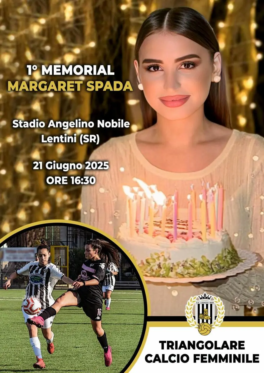Si svolgerà il prossimo 21 Giugno allo stadio “Angelino Nobile” di Lentini il “1° Memorial Margaret Spada”. Un evento che unisce sport e solidarietà, nato dalla collaborazione tra la Leonzio e la famiglia Spada con il patrocinio del Comune di Lentini.