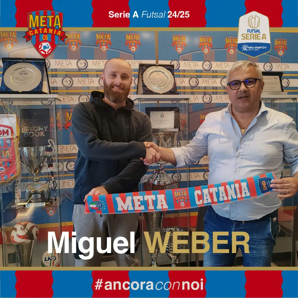 Dopo il rinnovo di coach Juanra alla guida tecnica, la Meta Catania ha appena annunciato la grande conferma anche per la stagione 2024-2025 di Miguel Weber che sarà ancora al fianco di Juanra come allenatore in seconda e Preparatore dei portieri rossazzurri.